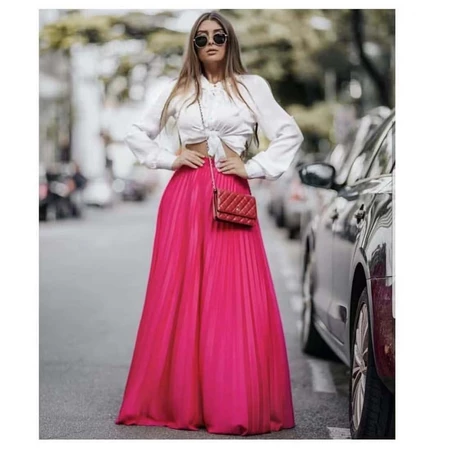 - Modelo plissado que confere movimento e sofisticação.